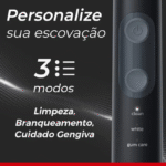 O modelo conta com 3 modos de uso — Limpeza, Branqueamento e Cuidado com a Gengiva — permitindo personalizar a escovação de acordo com a necessidade do dia. Seu sensor de pressão ajuda a proteger as gengivas, avisando quando a força aplicada está acima do ideal, enquanto o temporizador inteligente de 2 minutos e os alertas a cada 30 segundos facilitam a higienização equilibrada de todas as áreas da boca.