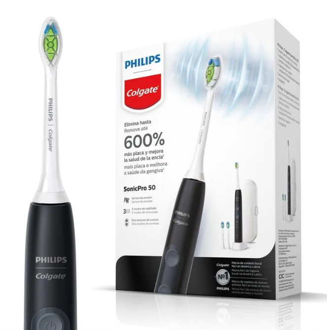 A Escova de Dente Elétrica Philips Colgate SonicPro 50 foi desenvolvida para oferecer uma limpeza profunda, uniforme e muito mais eficiente que a escovação manual. Com tecnologia sônica de alta performance, ela realiza milhares de movimentos por minuto, ajudando a remover placa bacteriana com maior precisão e deixando a boca com sensação prolongada de frescor e limpeza.