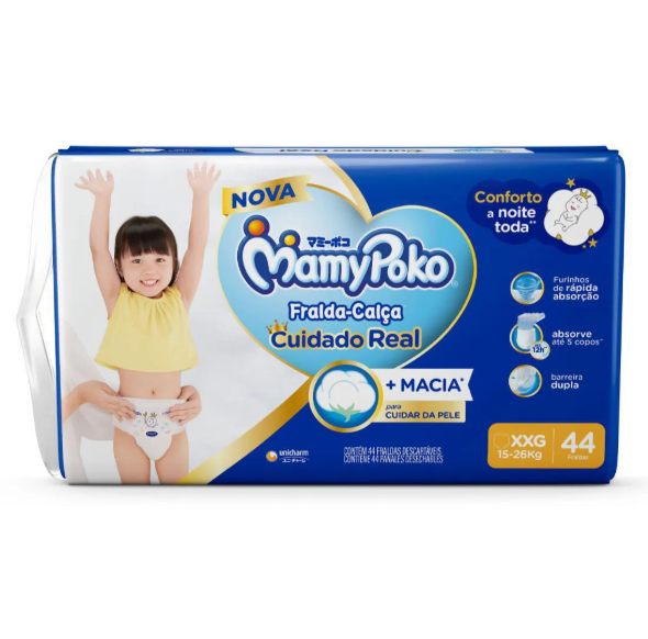 A Fralda Calça MamyPoko Premium Seca XXG 44 Unidades foi desenvolvida para oferecer conforto, proteção e praticidade ao longo do dia e da noite. Seu formato tipo roupinha facilita vestir e retirar, proporcionando ajuste seguro e confortável ao corpo do bebê. Possui camadas altamente absorventes que ajudam a manter a pele mais seca por mais tempo, além de toque macio que evita incômodos. O design anatômico permite liberdade de movimento, acompanhando o bebê em todas as fases. A linha MamyPoko é reconhecida pela qualidade e por entregar produtos confiáveis para o cuidado diário.
