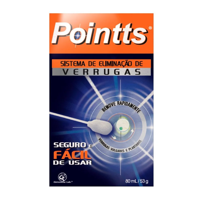 Pointts Antiverrugas 80ml O Pointts Antiverrugas 80ml é um spray prático desenvolvido para auxiliar na remoção de verrugas de maneira precisa e eficiente. Sua ação é direcionada: o jato atinge somente o local desejado, preservando a pele ao redor. É fácil de aplicar, não requer etapas complexas e pode ser usado em casa com segurança, oferecendo um procedimento simples e direto para o cuidado da pele. Ideal para quem busca uma alternativa rápida e acessível para minimizar verrugas comuns, proporcionando melhora gradual da área afetada. Benefícios Auxilia na remoção de verrugas comuns. Jato direcionado que facilita a aplicação. Ação local preservando a pele ao redor. Uso simples e prático em casa. Rende diversas aplicações. Ideal para quem busca praticidade e rotina de cuidado acessível. Modo de usar Agite antes de usar. Aplique o jato diretamente sobre a verruga, mantendo a distância recomendada na embalagem. Utilize apenas na área indicada e repita o processo conforme orientação do rótulo. Evite aplicar em pele irritada ou sensível.