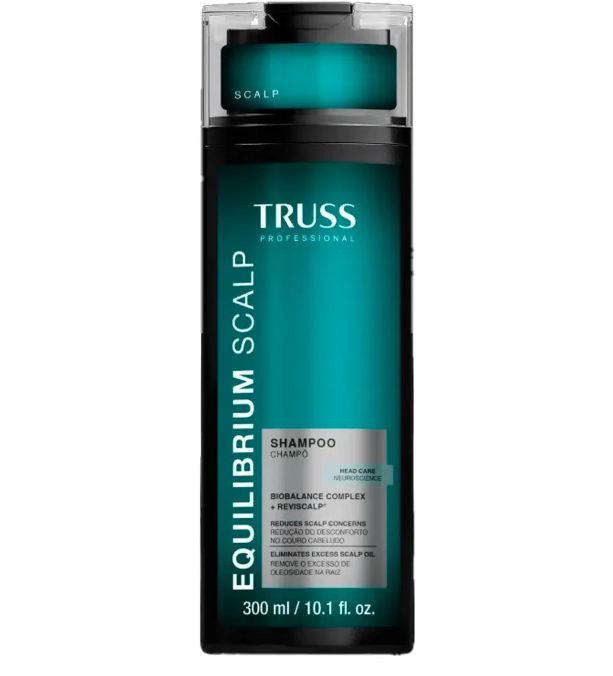 Shampoo Truss Equilibrium Scalp Rpk 300ml O Shampoo TRUSS Equilibrium Scalp RPK 300ml promove limpeza eficaz do couro cabeludo e dos fios, ajudando a remover impurezas, resíduos e excesso de oleosidade. Desenvolvido para o cuidado diário, proporciona sensação de frescor enquanto mantém o cabelo leve, solto e com aparência saudável. Indicado especialmente para cabelos mistos ou oleosos, o shampoo auxilia na redução da descamação visível e contribui para manter o couro cabeludo com aspecto equilibrado. Sua fragrância fresca transforma a rotina de lavagem em um momento agradável, deixando os fios limpos, macios e com aparência bem cuidada. Com o uso regular, os cabelos ficam mais leves, soltos e com sensação prolongada de limpeza, enquanto o couro cabeludo mantém aparência equilibrada. Benefícios Limpeza eficaz do couro cabeludo e dos fios Ajuda a remover impurezas e excesso de oleosidade Auxilia na redução da descamação visível Sensação de frescor após a lavagem Cabelos leves e soltos Contribui para fios macios e com brilho natural Indicado para cabelos mistos ou oleosos Sensação prolongada de limpeza Modo de usar Aplique o shampoo nos cabelos molhados. Massageie suavemente o couro cabeludo até formar espuma. Espalhe o produto pelo comprimento dos fios. Enxágue bem. Se necessário, repita a aplicação.