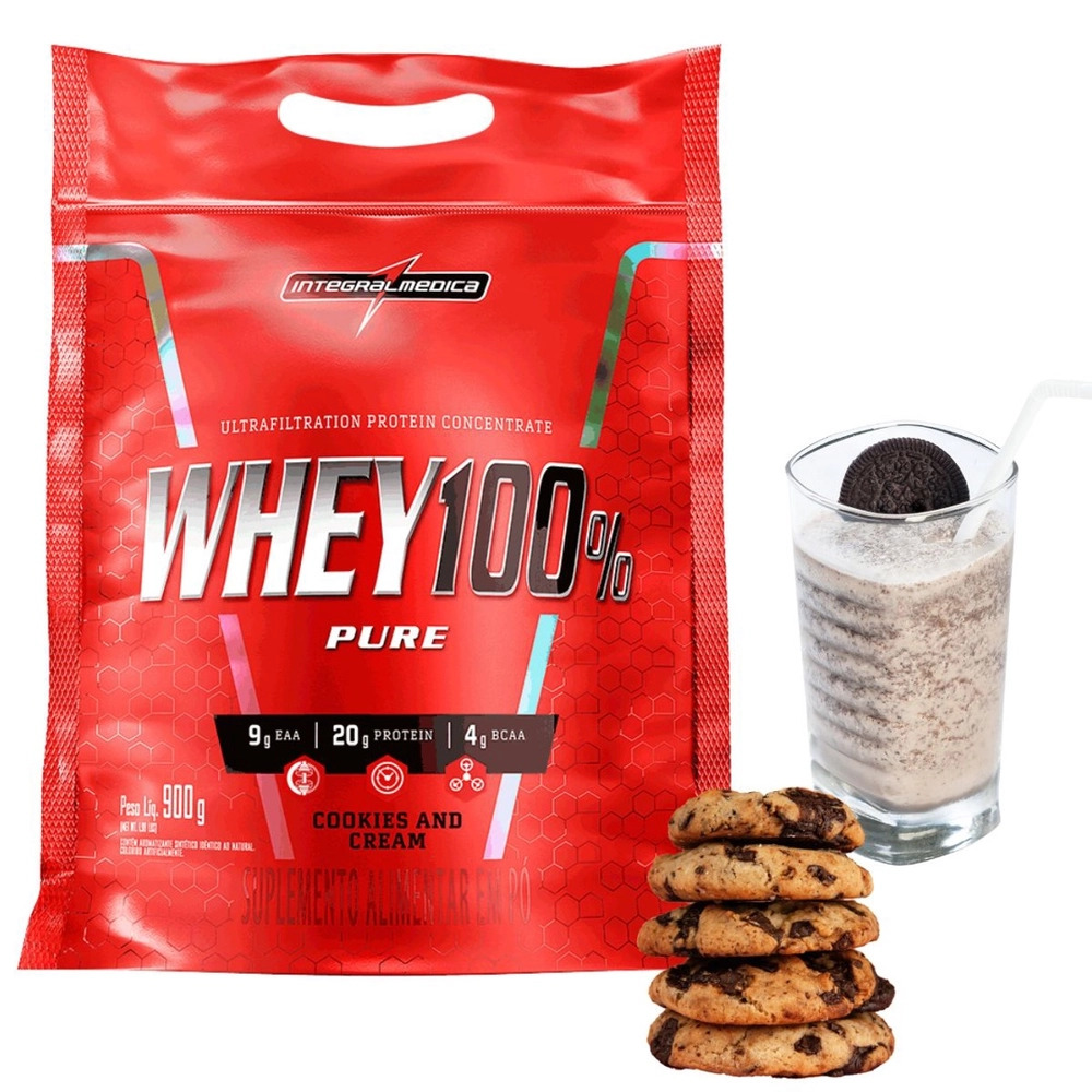 Incluso: 01 whey protein intregralmédica 907G – escolha O sabor no campo de seleção O Whey 100% Pure Pouch é o suplemento ideal e essencial para quem busca ganho de massa magra e recuperação muscular. Composto pela proteína concentrada do soro de leite, são 20 g de proteína por dose, 9,7 g de aminoácidos essenciais e 4,6 g de bcaa.Uma ótima opção para o pós treino, o Whey 100% Pure Pouch auxilia na manutenção da massa magra, possui baixo teor de carboidrato, gordura e sódio. Zero Glúten.Alta qualidade para a sua suplementação, o Whey 100% Pure Integralmédica contém matéria-prima importada, e ótima absorção pelo organismo, evitando a sensação de inchaço após o consumo.A proteína do soro é a fonte mais nobre de proteína do leite com alto valor biológico, isso devido a sua alta concentração de aminoácidos essenciais e aminoácidos de cadeia ramificada (bcaa), esses aminoácidos têm papel fundamental na síntese de proteínas e construção muscular.O Whey 100% Pure Pouch pode ser utilizado em programas de ganho de massa muscular devido a sua alta concentração proteica, já que para a construção muscular as proteínas de alto valor biológico são indispensáveis.Proteínas de alto valor biológico também são necessárias para a preservação da massa muscular e manutenção do gasto calórico diário em dietas voltadas para o emagrecimento.Por ser rico em aminoácidos essencias, em especial os BCAA’s, o Whey 100% Pure Pouch acelera a recuperação muscular após treinos intensos, possibilitando assim maiores volumes de treinamento.O Whey 100% Pure Pouch pode ser utilizado logo após o treino, para otimizar a disponibilidade de aminoácidos devido à uma maior absorção do organismo.Entretanto, já sabemos que é fundamental que a proteína de alto valor biológico seja ingerida durante as 24 horas do dia, especialmente para manter alta as concentrações de aminoácidos essenciais, por isso pode ser consumido entre as refeições também.Pode ser ingerida com água quando o objetivo for manter a rápida absorção da proteína e o baixo teor de gorduras e carboidratos, ou adição também de frutas e aveia quando o objetivo for aumento da saciedade ou substituir uma refeição, como o café da manhã, por exemplo.*Alegações de acordo com Anexo V da in 28 anvisa.Suplemento Alimentar de registro de acordo com a Resolução rdc nº 240/2018.imagem meramente ilustrativa